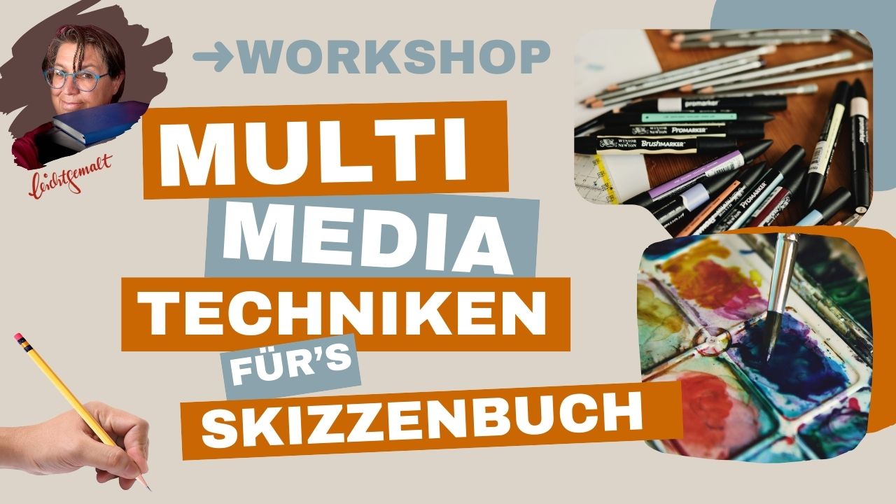 Muss ich mir etwas Besonderes besorgen? Nein, Papier und Stift genügen völlig. Für den Aquarell-Workshop benötigst du Aquarellfarben und Aquarellpapier. Für den Multimedia-Workshop kannst du alles verwenden, was du zur Hand hast – von Buntstiften bis Collagematerial.