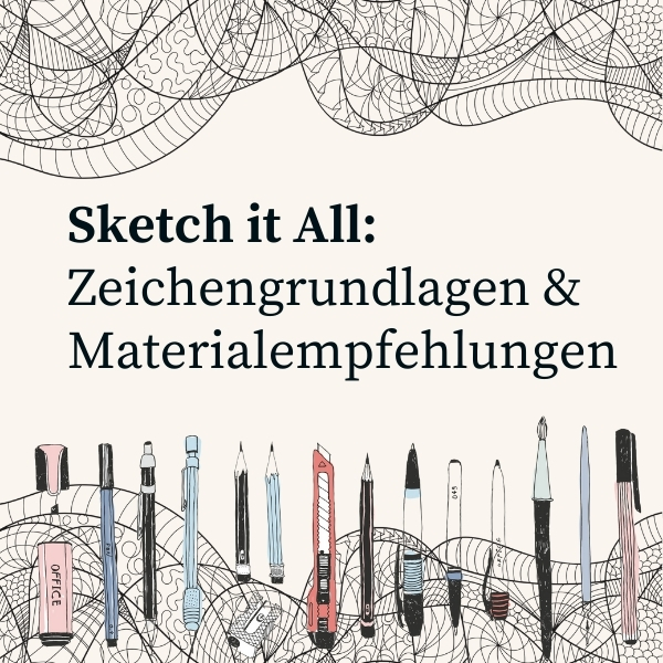 Mein Skizzenbuch ist dabei mein kreativer Spielplatz, mein Denkraum, mein Erinnerungsalbum. Hier teste ich neue Techniken und Tools und entwickle meine Ideen für meine Zeichen- und Malkurse. Ich lade dich ein, dir auch so einen kreativen Ort zu schaffen, für deine Ideen, deine Themen und deine Art zu zeichnen. Damit dir der Einstieg leicht fällt, habe ich die Workshop-Reihe Sketch it All im Programm. Mach es dir leicht und starte deine kreative Reise jetzt! Denn Zeichnen ist nicht nur Technik: es ist Ausdruck, Freiheit, und ein Geschenk an dich selbst.